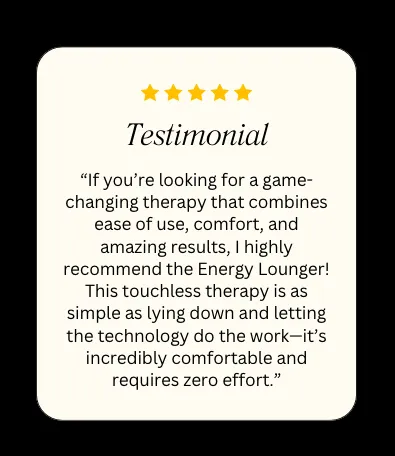 Take charge of your health with the EnergyLounger, a cutting-edge device that helps reduce pain and stiffness, promotes relaxation,